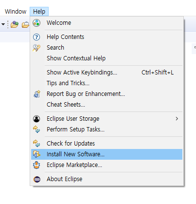 Eclipse에서 Help->Install New Software를 눌러준다.