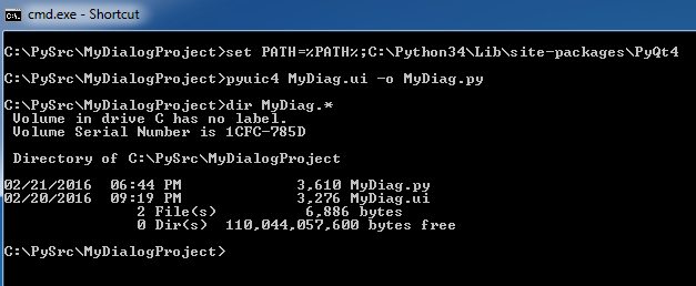 (주: 예전에는 Riverbank의 PyQt 다운로드 사이트에서 파이썬 3.4용 PyQt4 를 다운받아 설치하였으나, Riverbank에서 더이상 공식 빌드를 제공하지 않고 소스코드만 제공하고 있다.) - Cmd.exe를 실행해서 Python 3.4가 설치된 디렉토리 밑 Scripts 폴더로 이동한 후, pip install {wheel파일} 명령을 실행한다.